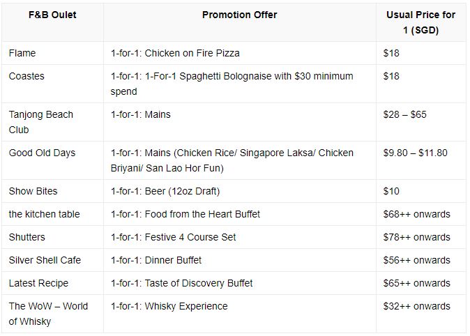 4. 圣淘沙: Mastercard 圣诞1-for-1优惠