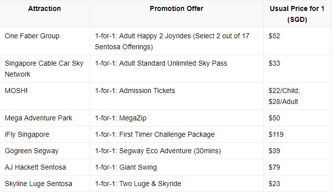 景点和餐饮 1-for-1 的活动