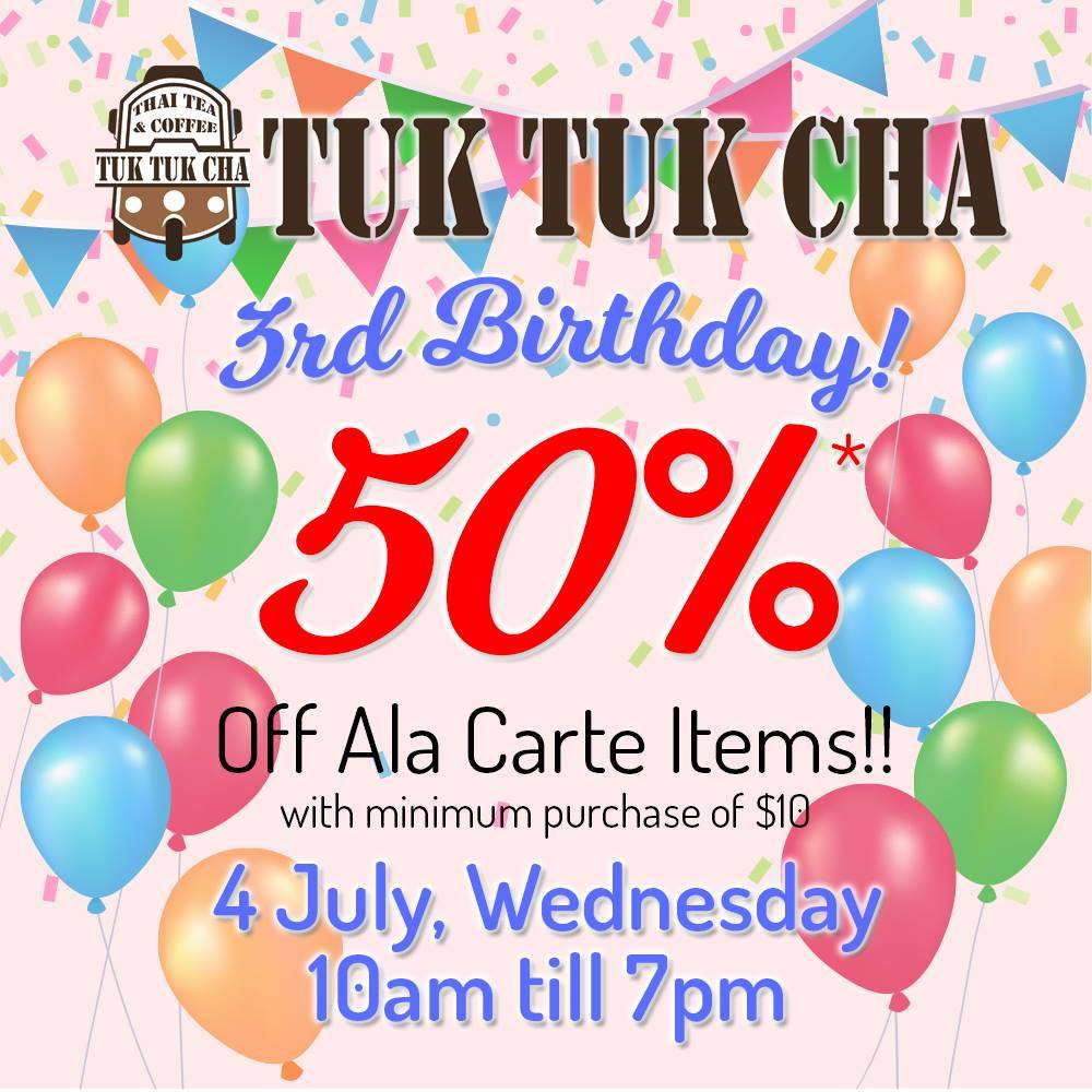 2.Tuk Tuk Cha三周年店庆,全!部!饮!品!半!价!
