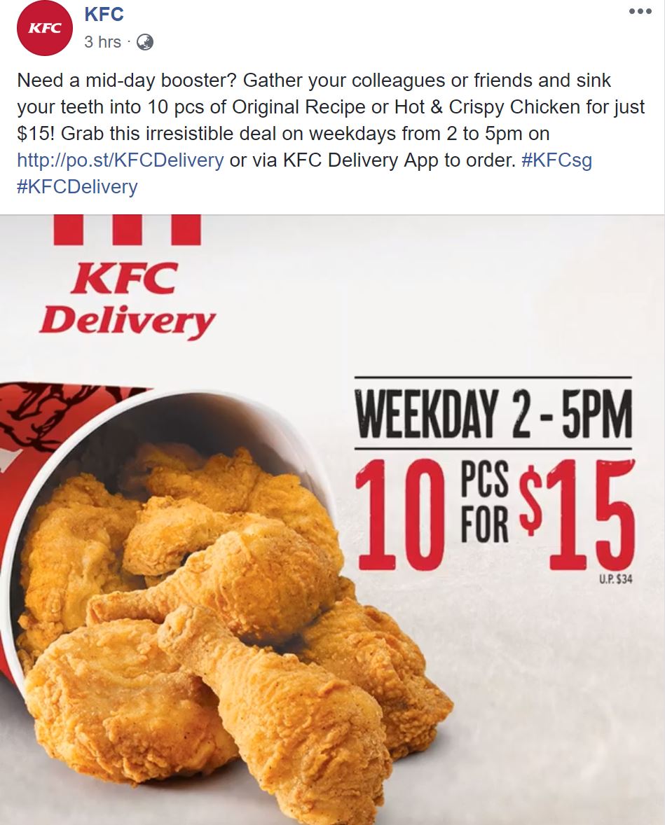 5.KFC工作日下午茶时段 10鸡块只要S$15