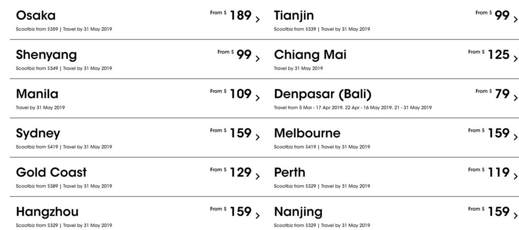 2.SCOOT周二例行促销:全球60+目的地,含税机票49新币起