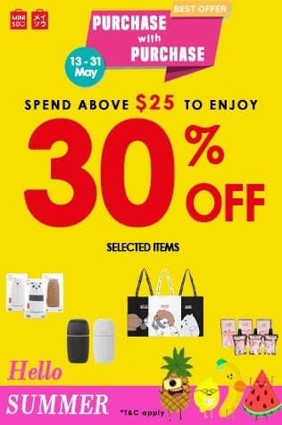 2.Miniso换购活动,消费满25新币指定产品享受7折优惠