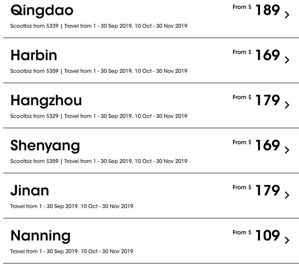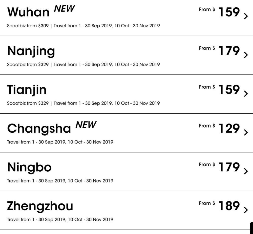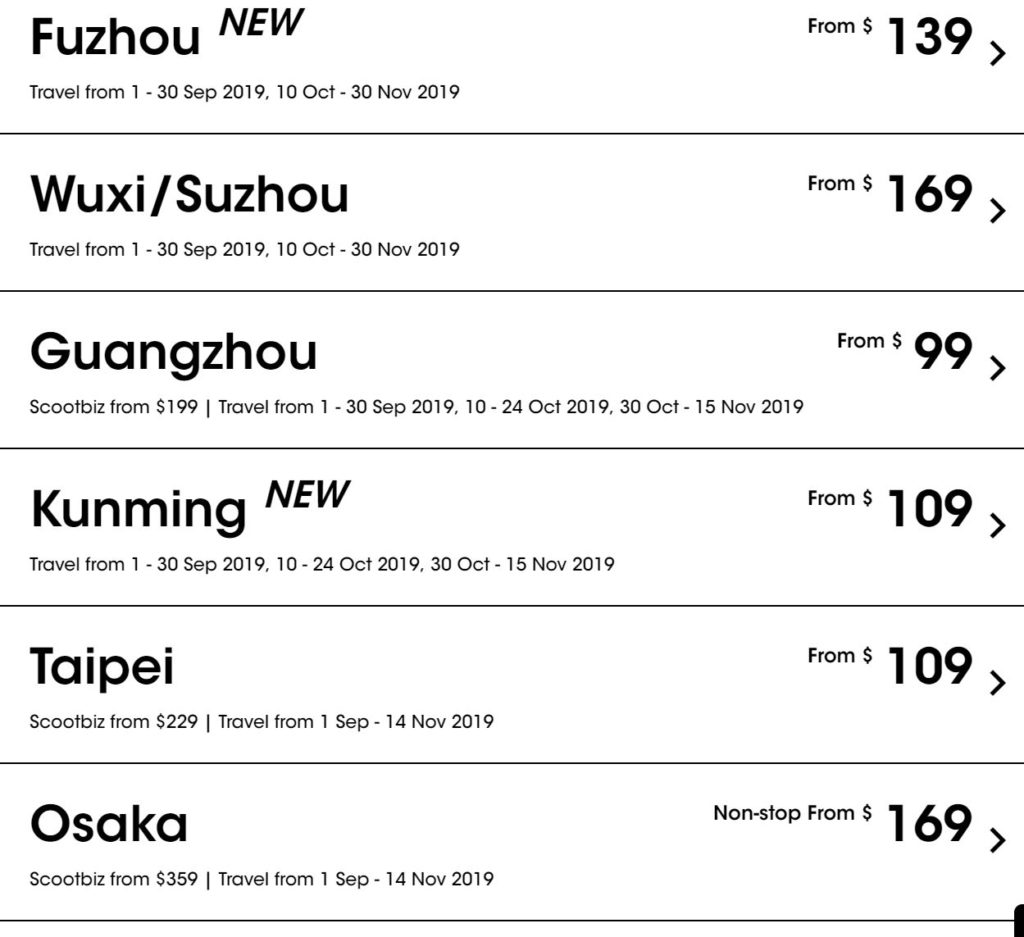 2.酷航周二例行优惠,27目的地含税机票89新币起
