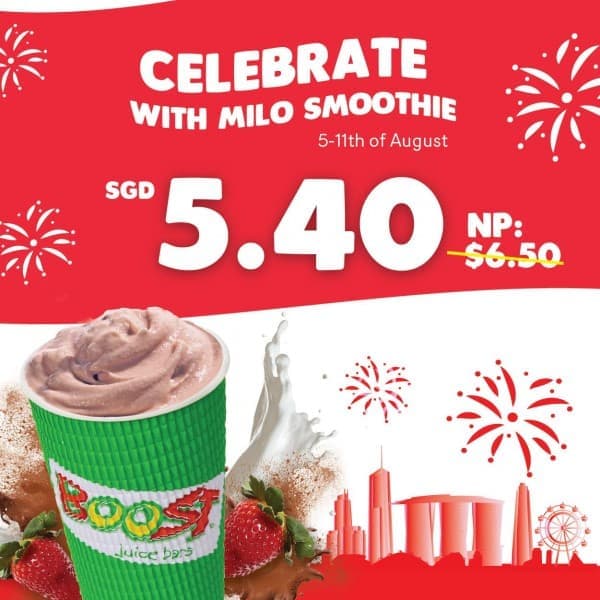 4.Boost Milo奶昔限时NDP优惠只要S$5.40