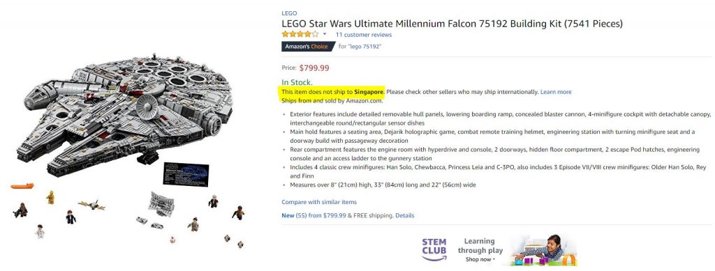 Amazon.com 现有 乐高星战系列 UCS 终极收藏版新千年隼(75192),售价$799.99,约合1060新币。仅限Prime用购买,且不支持直邮新加坡,可考虑朋友代收或转运带回。