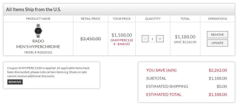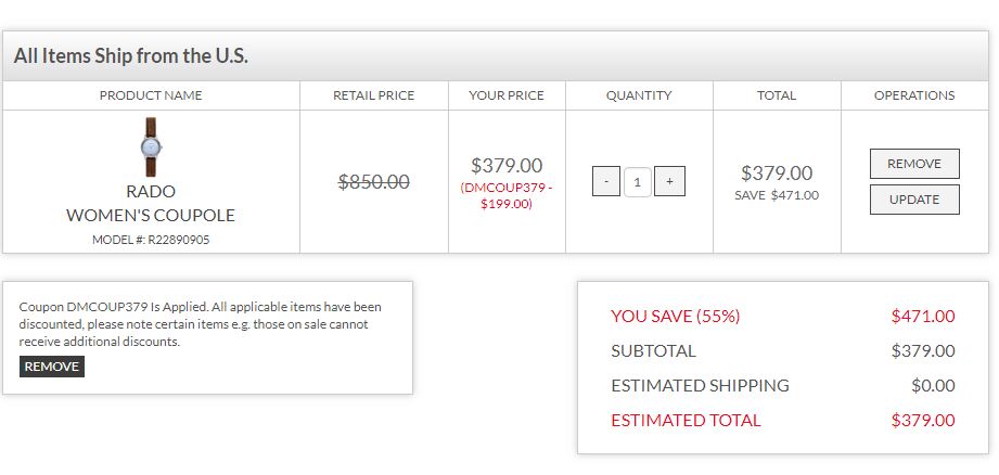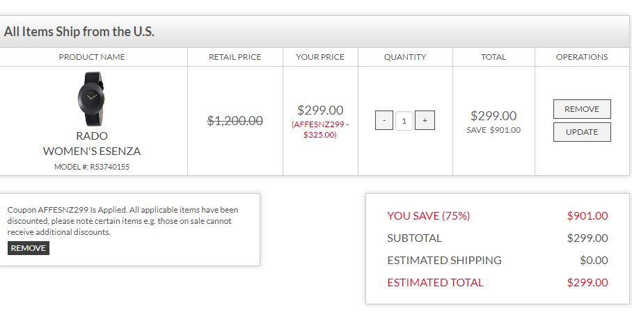 Ashford再出新优惠码,多品牌表款历史新低价,RADO $299起~