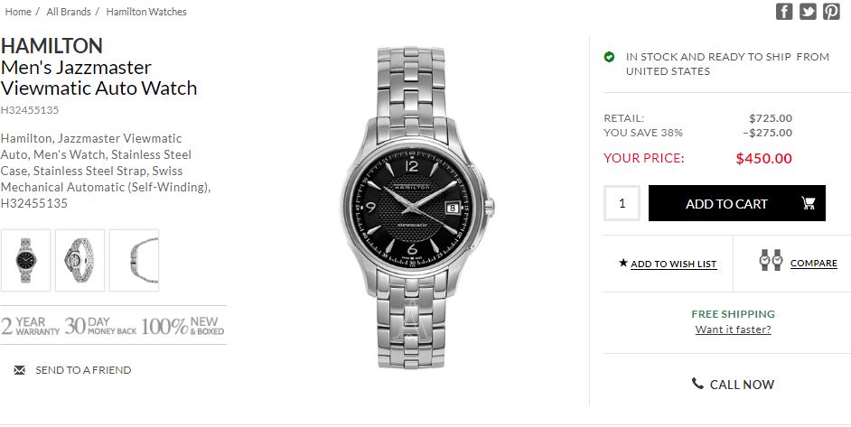 5. HAMILTON Jazz master系列 H38615735 纤薄机械腕表 使用优惠码【AFFJAZZM388】折后 $388