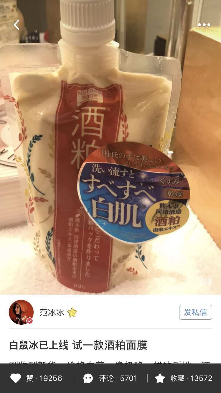 前一阵子美妆博主范冰冰推荐的日本酒糟面膜