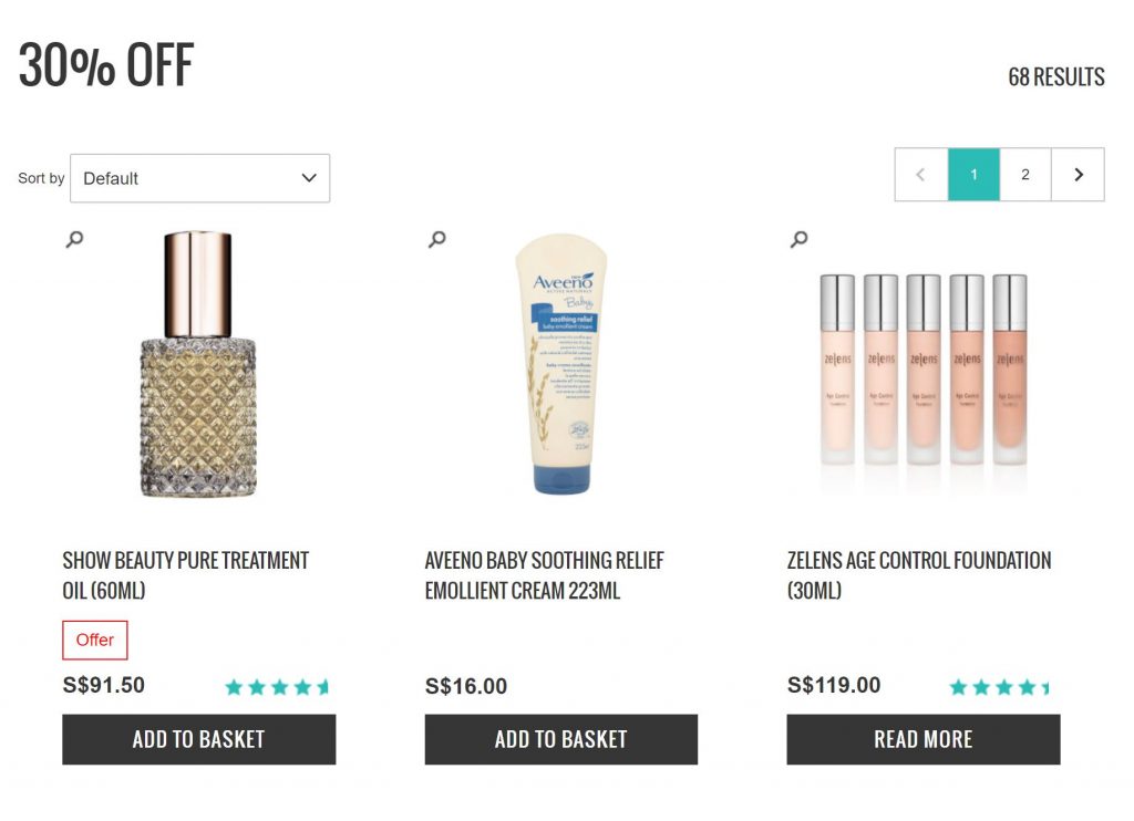 页面内Aveeno、Elemento等精选品牌
