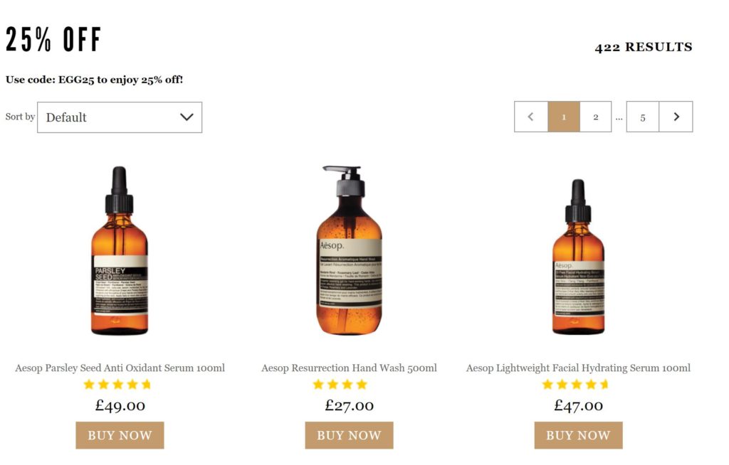 也推出了Aesop用码75折优惠