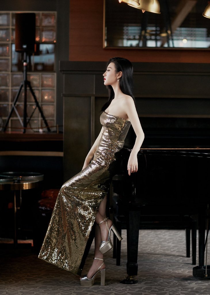 景甜这条刷爆微博的金色人鱼裙