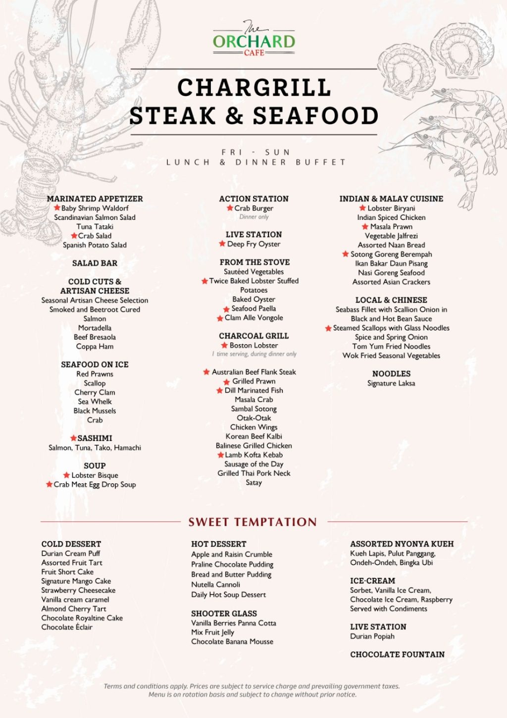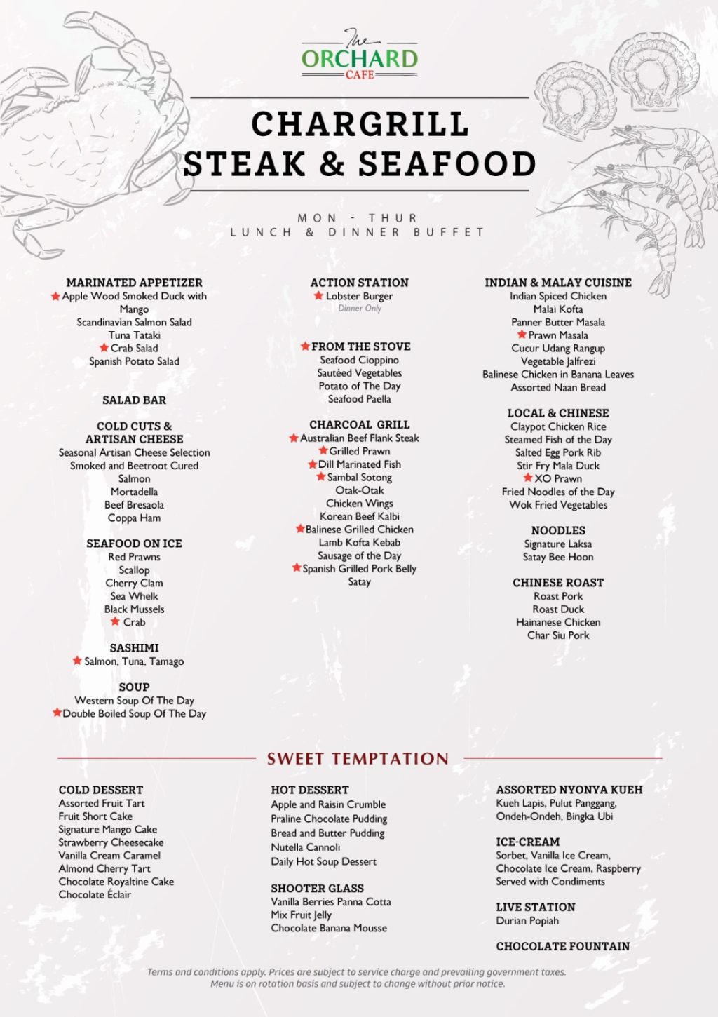 乌节路酒店炭烤美食与海鲜自助餐,第二位半价!尽情享受龙虾、螃蟹、牛肉肋排、烤五花肉😋