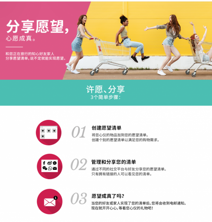 另外,樟宜网上免税店还推出了Share A Wish List 分享愿望