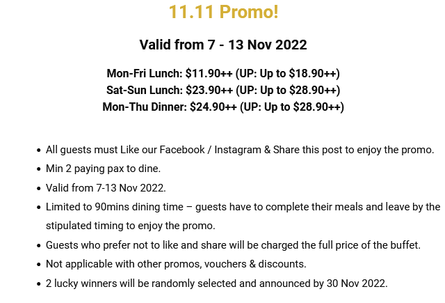 星期一至五【午餐】:$11.90++(原价高达$18.90++)