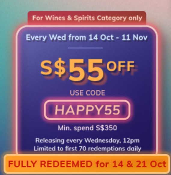 消费满350新币Wine&Spirits立减55新币👇