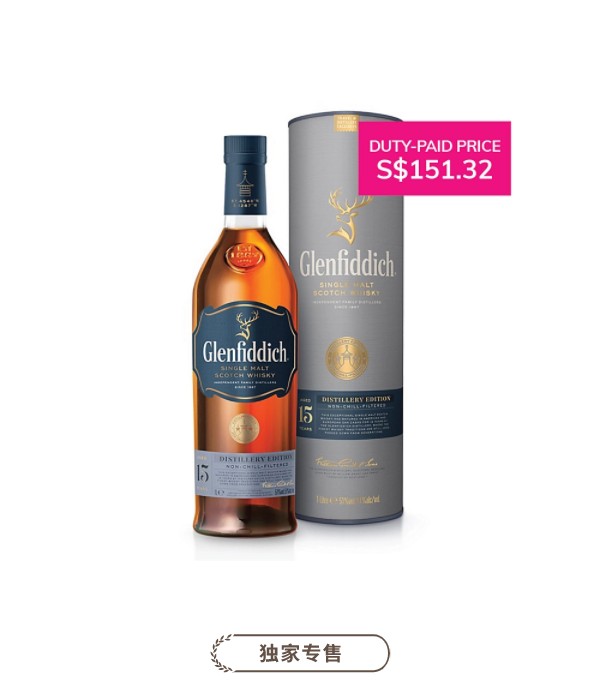 格兰菲迪15年酒厂原酒版本 1000ML