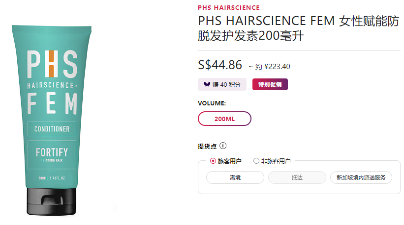 而且消费PHS洗护发产品满80新币