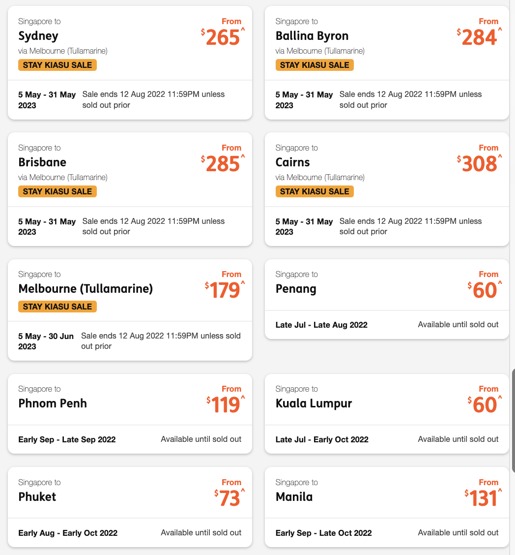 目前Jetstar推出了新加坡国庆节大促活动