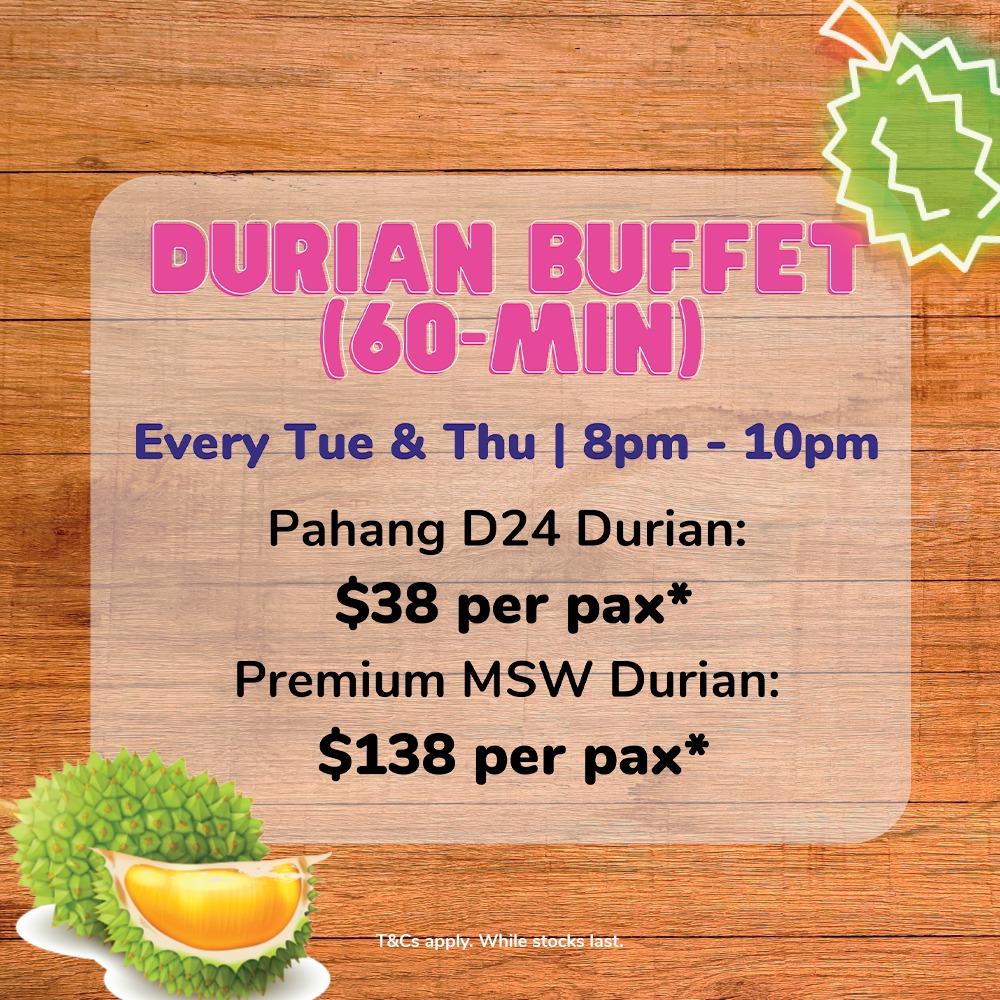 即日到8月6日,$38猫山王、D24榴莲自助餐任你吃到饱!Jurong Point会员还可获10%折扣~
