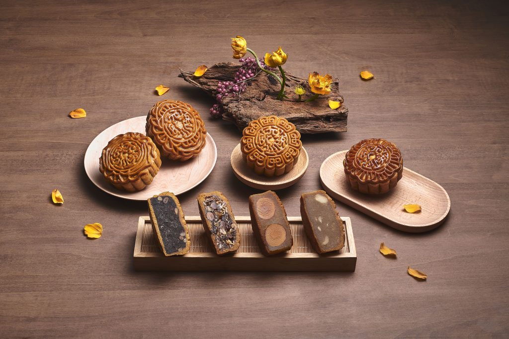 传统白莲蓉配澳洲坚果月饼、焙茶抹茶葡萄干等