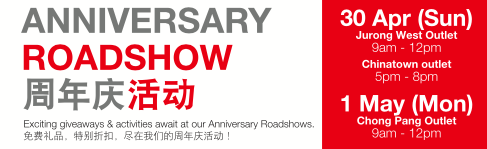 • Jurong West Outlet 裕廊西 (4月30日 9am-12pm)