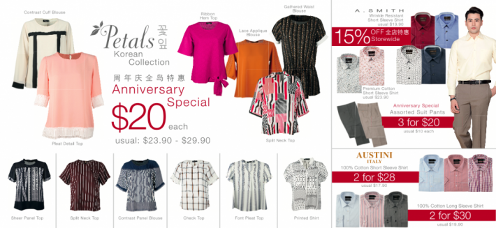 动辄2 for $28, 3 for $20的男士衬衫西裤,