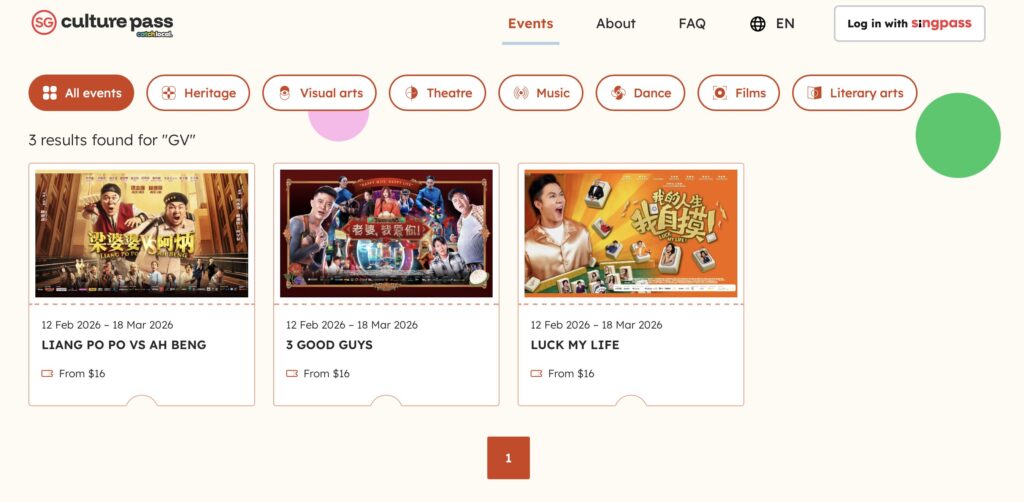 薅羊毛啦!皇后手把手教你用SG Culture Pass免费换电影票,三部贺岁片任你选!