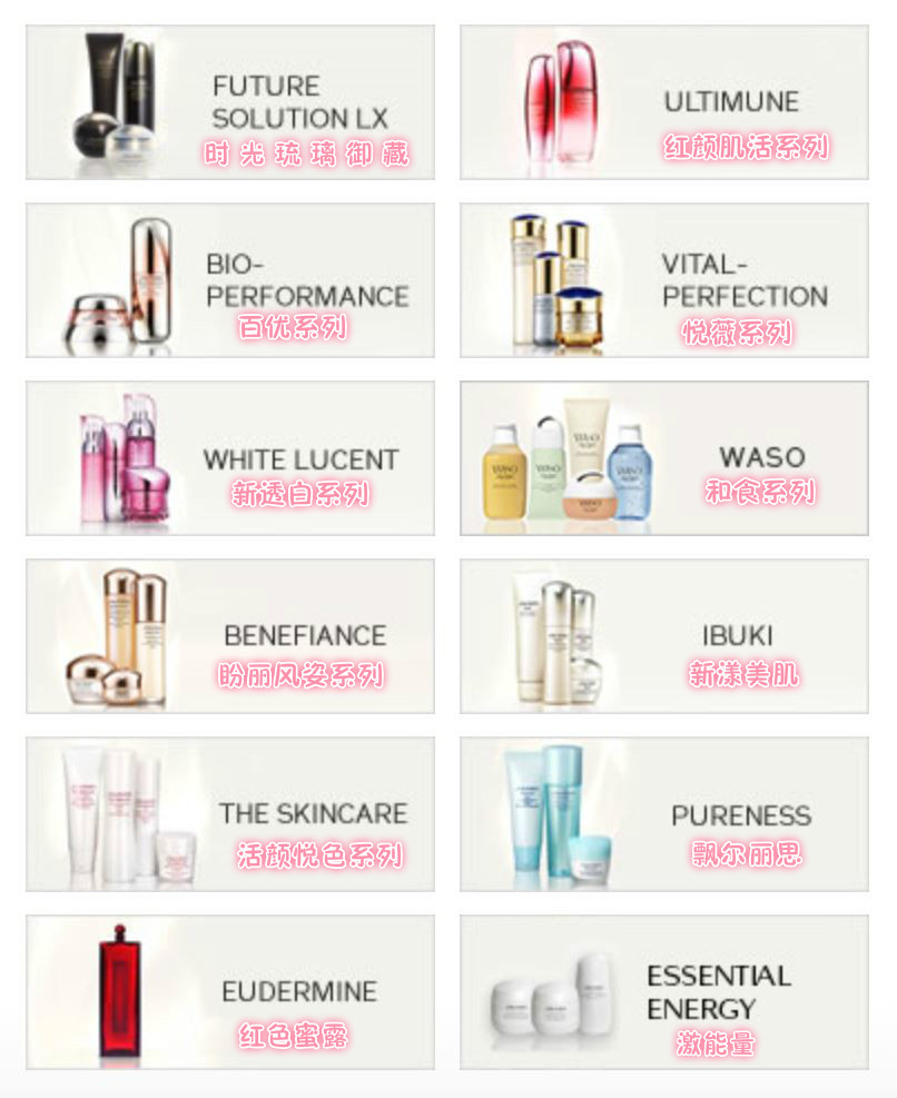 图中的10个品牌是目前新加坡资生堂品牌下的护肤系列