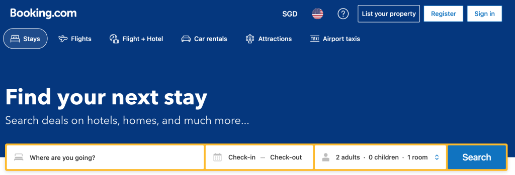 通过Booking预定酒店、民宿