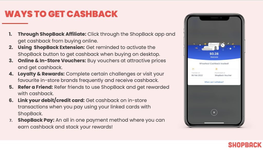 ShopBack有多种获得Cashback的方式