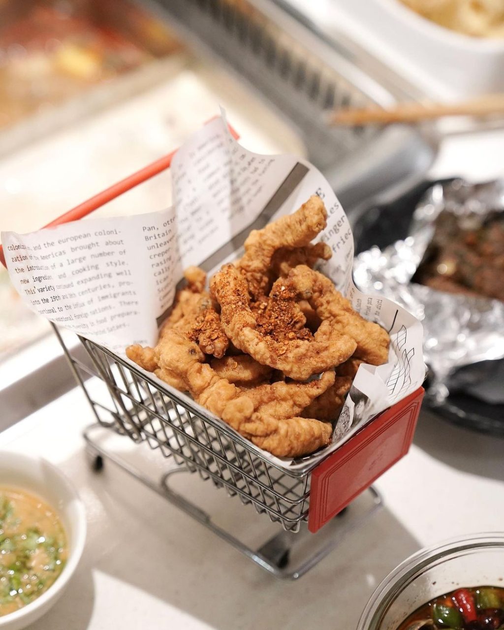 装在小推车里的酥肉