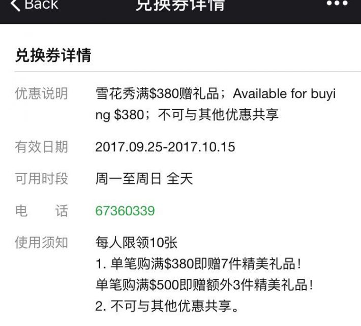 雪花秀满$380送七件礼物,满$500额外再送3件