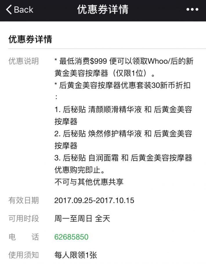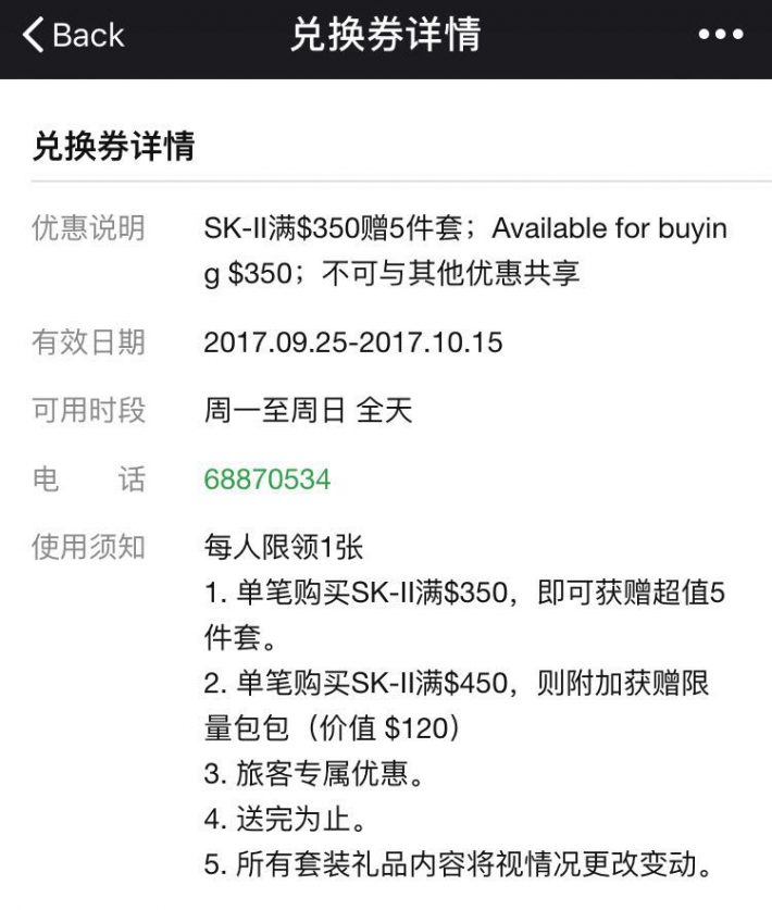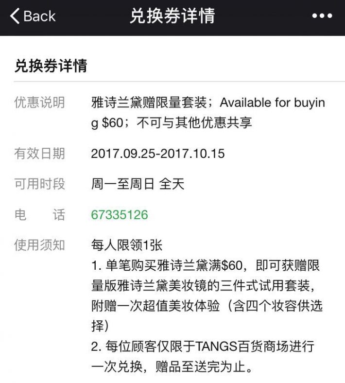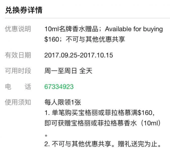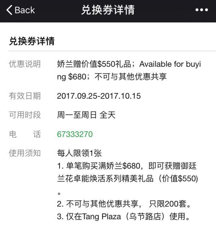 娇兰产品消费满S$680