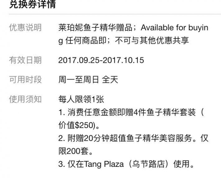 娇兰和La prairie的活动只在tangs plaza orchard店可用