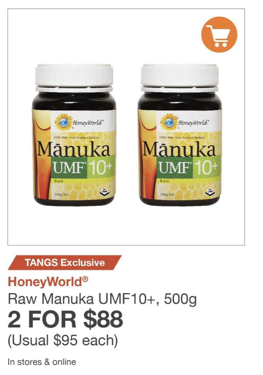 Raw Manuka UMF10+, 500g 2瓶仅需88新币(原价每瓶95新币)