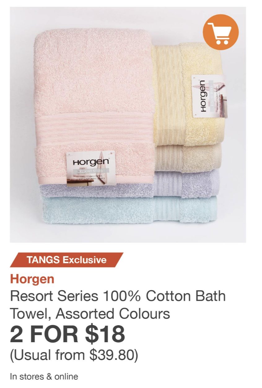 纯棉毛巾2条仅需18新币(原价39.80新币)