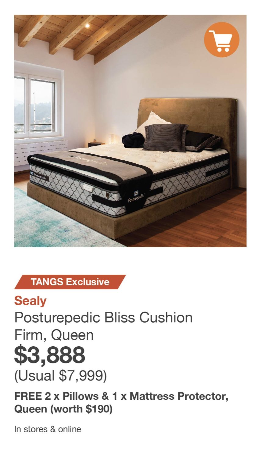 购买Posturepedic Bliss Firm, Queen床垫,特价3888新币(原价7999新币)送一对枕头和床垫保护罩(价值190新币)顶级床垫一步到位的配置~完美~