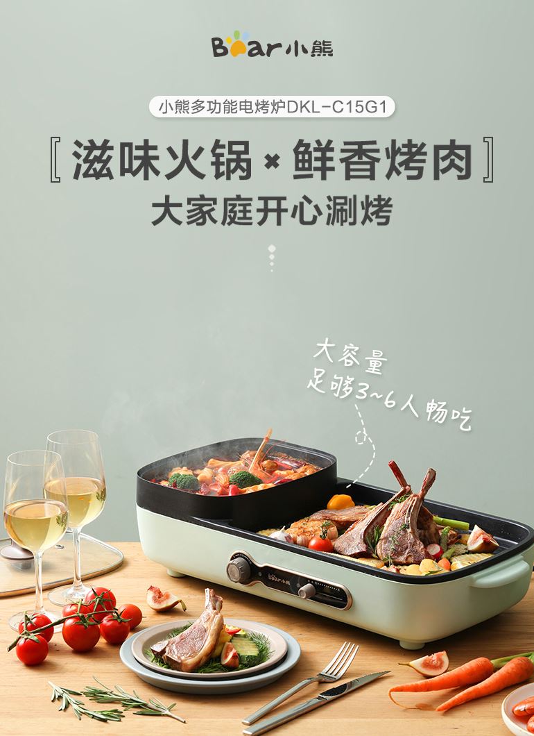 高颜值的小熊火锅烧烤一体锅