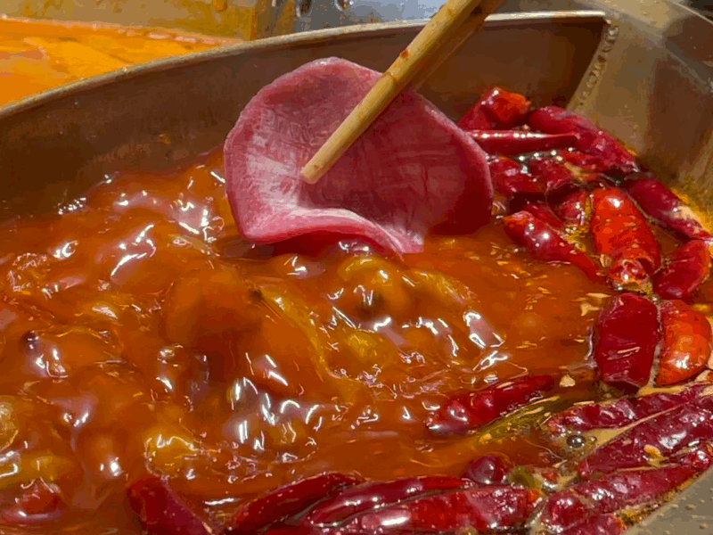 在红汤中滚过