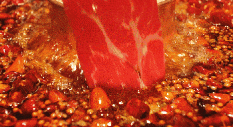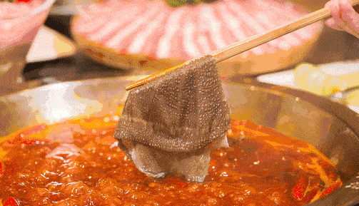 鲜嫩的肥牛在麻辣味爆棚的汤锅中起起伏伏