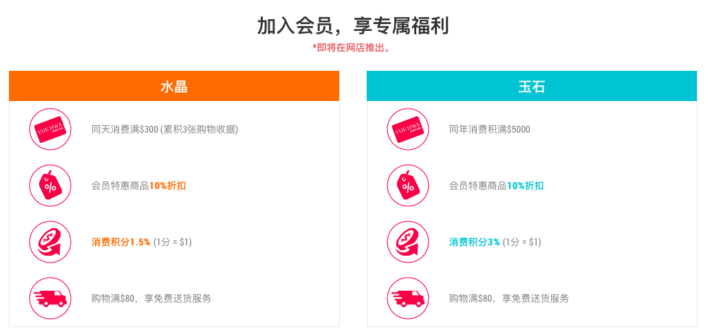(只要同天消费满300新币,最多累计3张收据,就可以成为“水晶”会员;同年累计消费满5000新币,可以成为玉石会员)