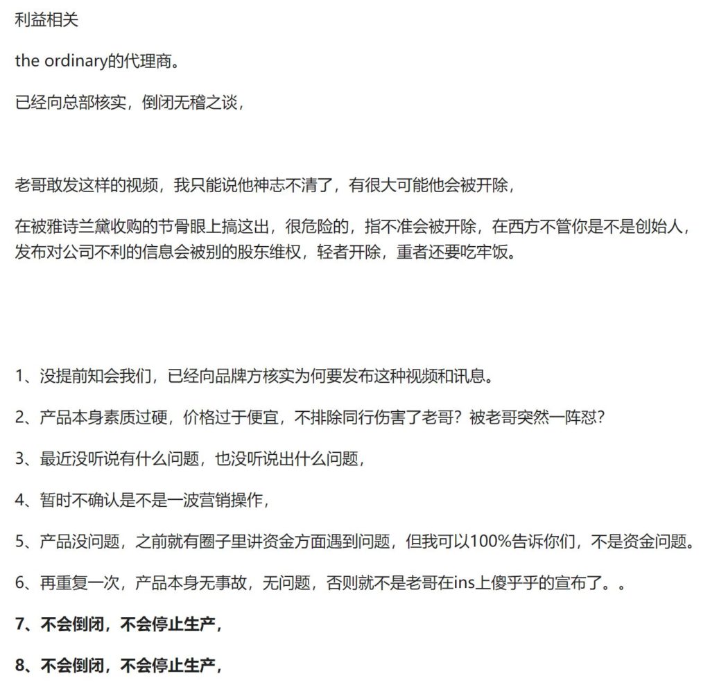 上周The Ordinary宣布倒闭的大瓜刚出