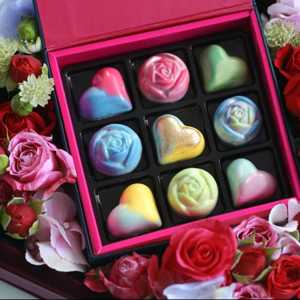 店家还推出爱心与花朵形状的巧克力🌹