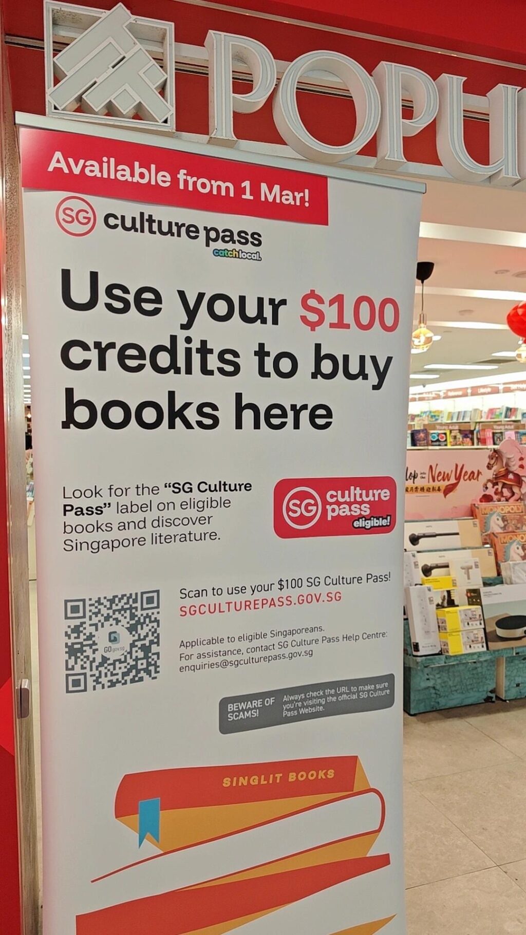只要在实体书店看到贴有「SG文化通行证」标识的书籍,都可以直接购买🛍️