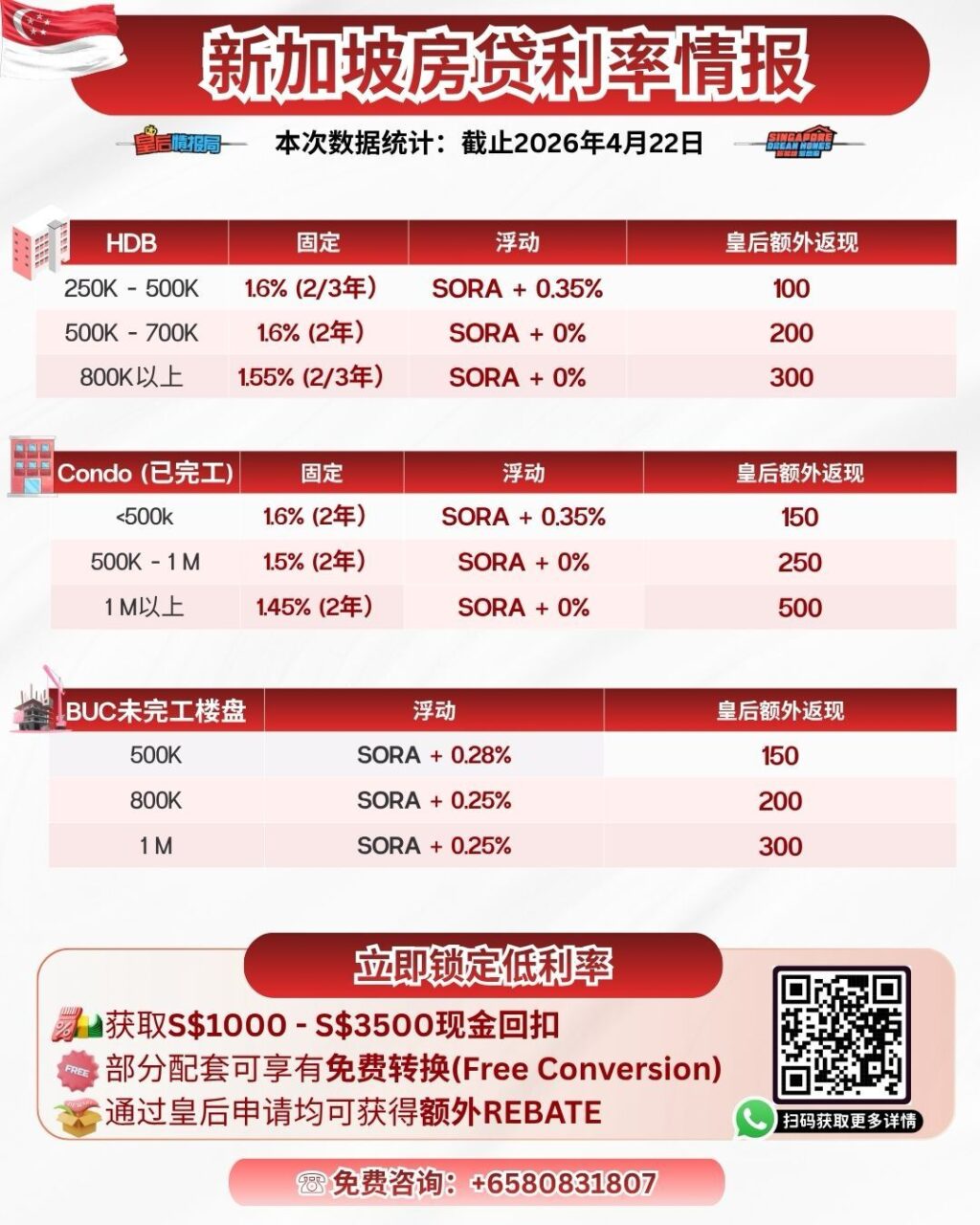 ✨4月22日新加坡房贷利率情报✨