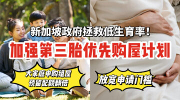 新加坡生育率跌至历史新低!政府催生大法来了!今年6月起三胎家庭BTO预留配额翻倍,怀孕家庭也可申购!