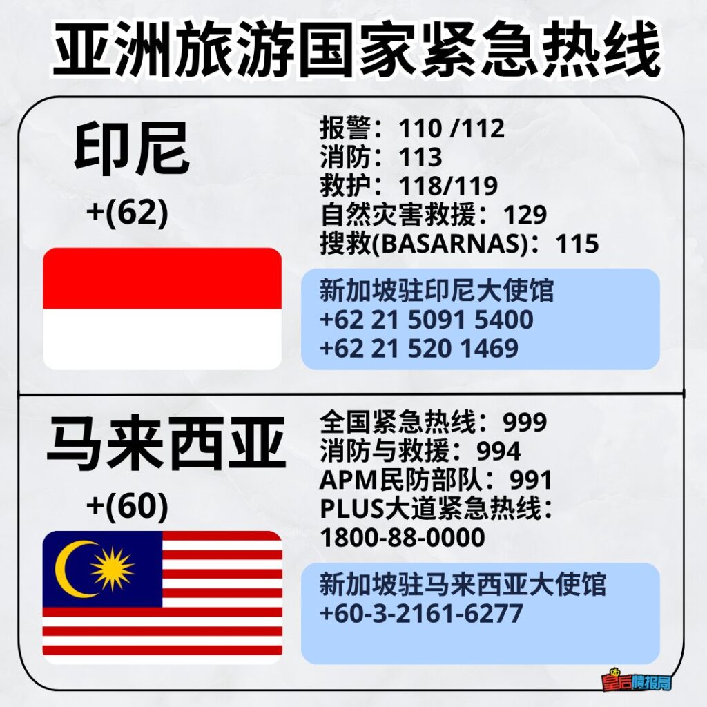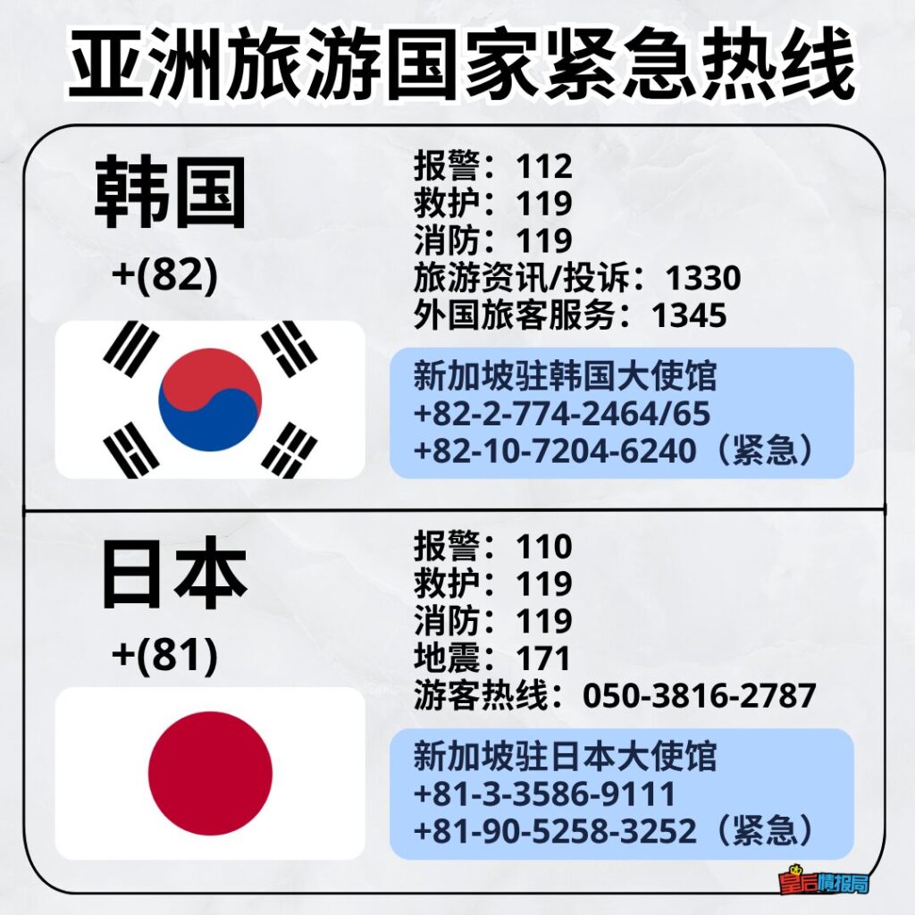 出国保命符!亚洲8大旅游国紧急热线☎️!建议收藏以备不时之需🚑🚨