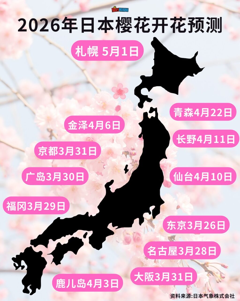 飞出国外!2026年日本樱花预测出炉!樱花季倒数中,大家先收藏吧🌸