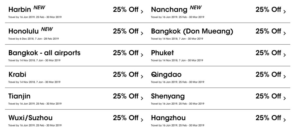 2.酷航周二特价,75折来袭
